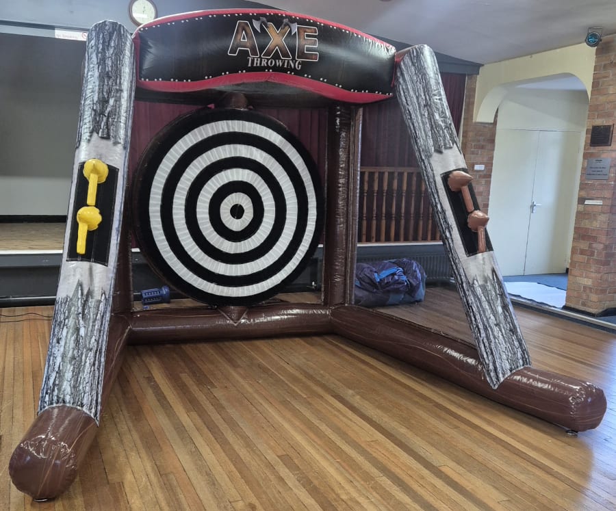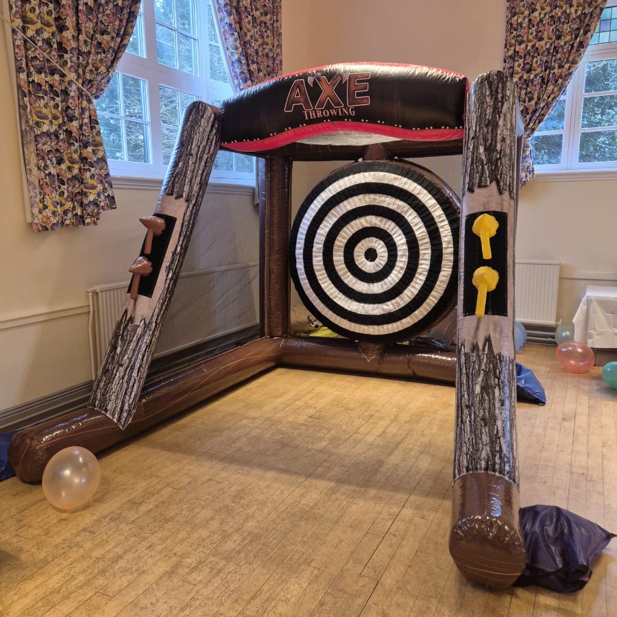Our Inflatable Axe Throw game delivers all the excitement of axe throwing, without any sharp axes!! Using soft, Velcro axes and a giant inflatable target, it's a safe, fun and seriously addictive game for both kids and adults.